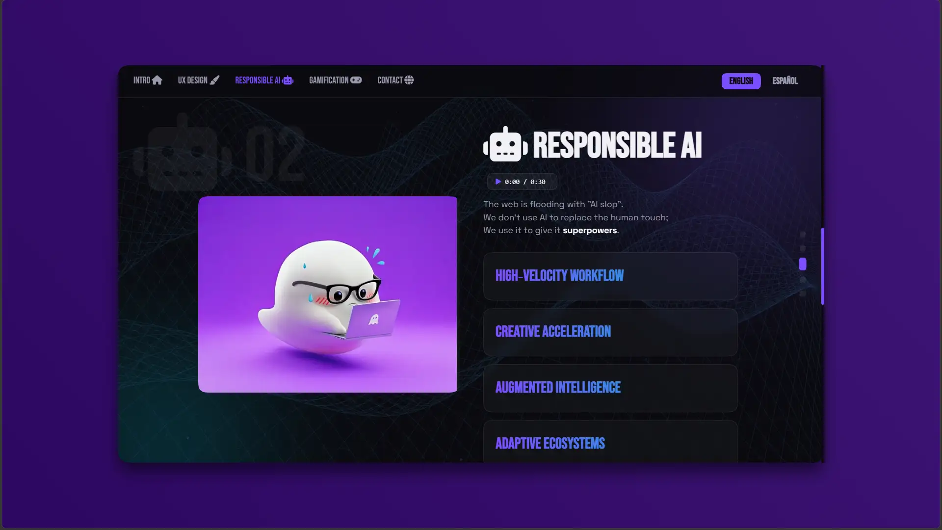 2. Navigate the Pillars: Use the sidebar dots or top navigation to jump between IntroUXAI, and Gamification.